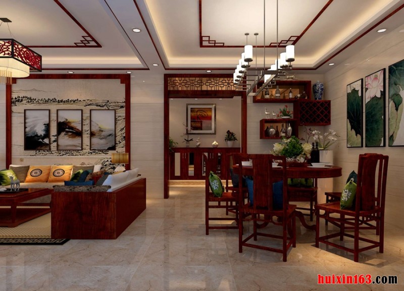 ![]() 威尔登堡-中式风格装修效果图--客厅、餐厅